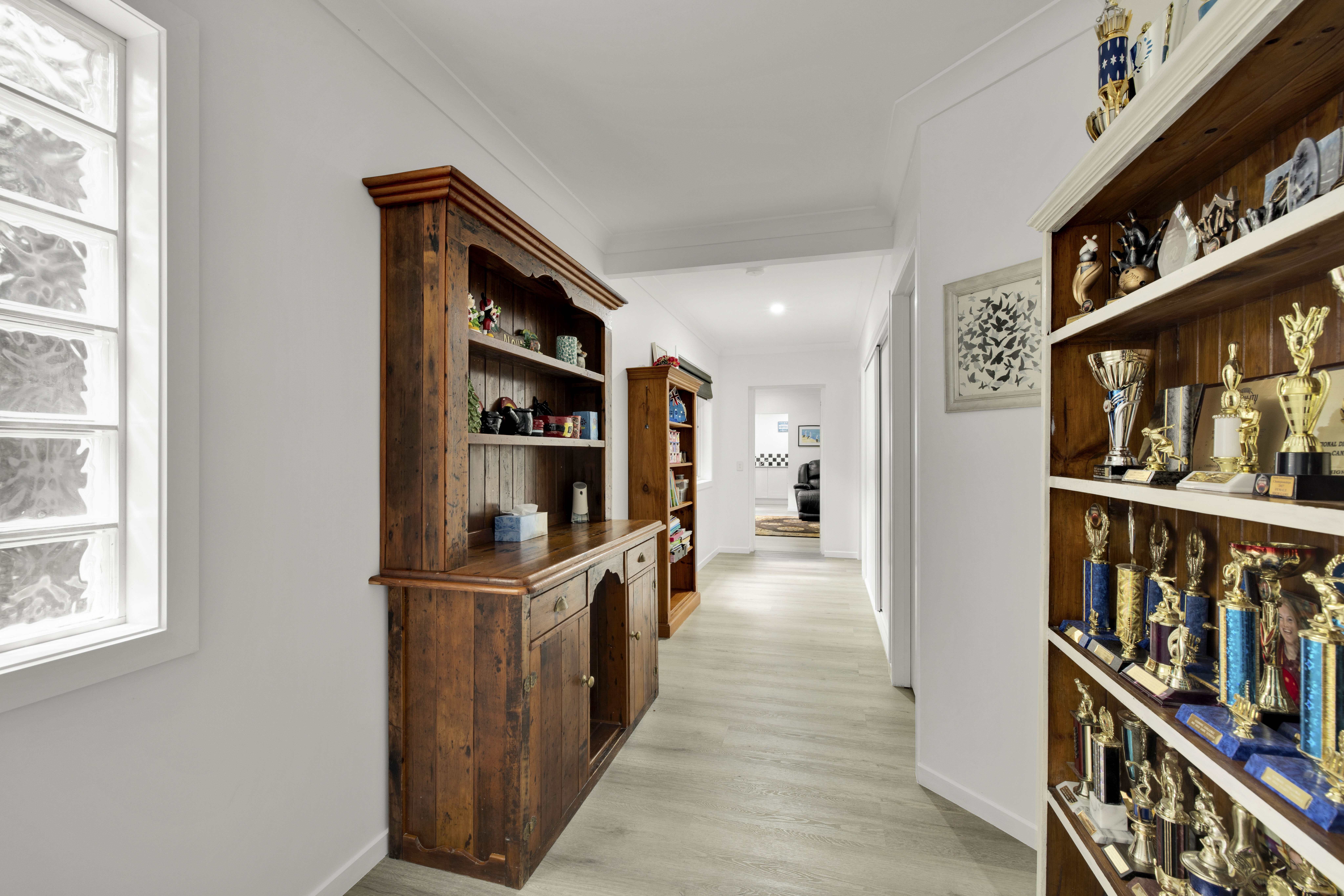 The main residence, a classic two-storey home, offers four generous bedrooms, a study, two living areas, and three bathrooms plus a powder room. Among these, a self contained studio with kitchenette and bathroom offers versatility, while upstairs the modern kitchen featuring butler's and extensive alfresco patio provide an entertaining haven with lush green outlook.